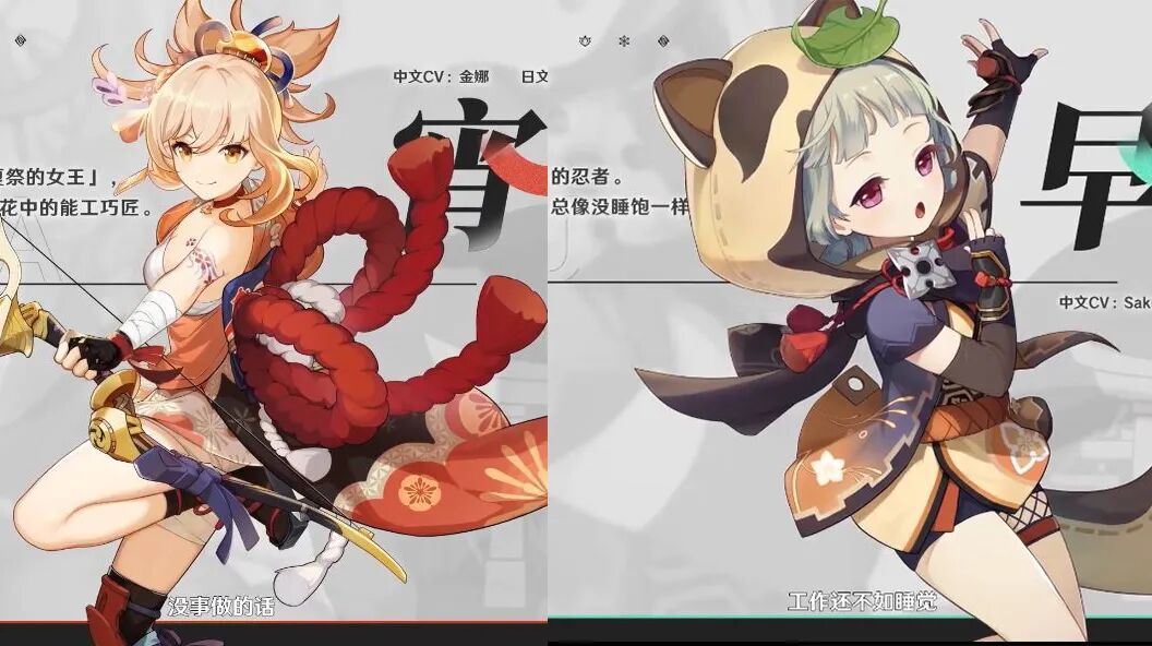 神里绫华将作为“稻妻”版本第一个卡池UP角色,紧随其后的就是宵宫和早柚。宵宫是一名火元素弓箭角色,玩家曾将她和安柏进行对比,谁叫安柏是目前《原神》中唯一的火弓呢。不过宵宫明显要强力的多,精通制作烟花的她,还有着如烟花般华丽的战斗身姿。而身为忍者的早柚就更有趣了,因为某些原因导致身体停止生长,看上去虽然是一个萝莉,但人家已经是大孩子了。