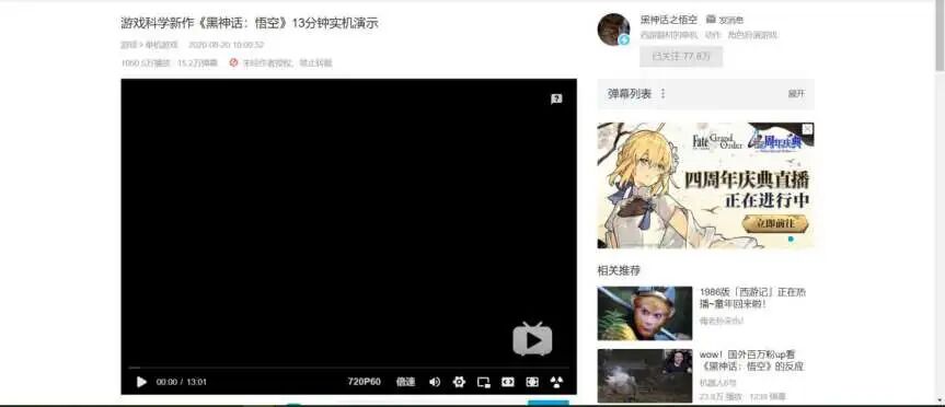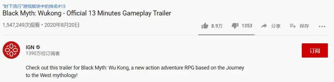 《悟空》的热度,也很快从国内蔓延到了国外。IGN在YouTube上上传了《悟空》的13分钟演示。该演示目前也获得了150万的播放,8.9万的点赞以及1万多条的评论。