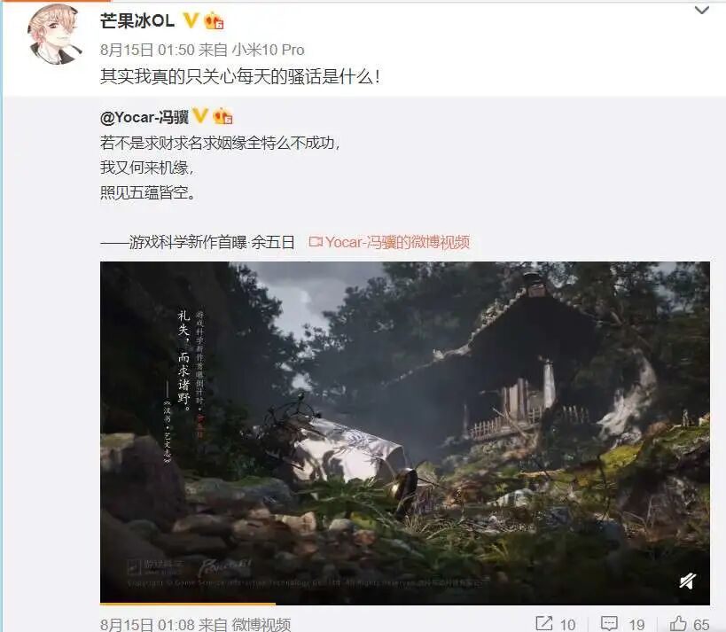 在经历了一波媒体舆论的快速发酵,以及玩家的爆发式传播和讨论后。社交媒体上也开始出现了越来越多理性讨论游戏内容的声音。无论是在微博、B站还是知乎,越来越多的人参与到关于游戏的讨论中来。这其中也包括游戏的主创——游戏科学的创始人兼CEO冯骥。