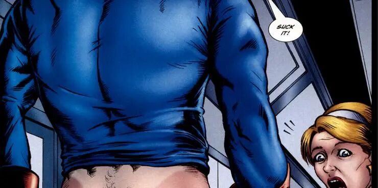而盖斯所做的,就是将这套人性的“腐败”,套用到当时占据了大部分漫画市场的“超级英雄”们身上,看起来充满了对主流娱乐文化的讽刺和嘲笑,也难怪DC会将它腰斩。