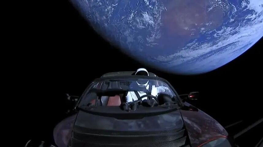 关于马斯克送车的这件事儿,我们已经在这篇《埃隆·马斯克和他的宇宙浪漫》里聊过,大概就是这位商业巨头送了辆自己的特斯拉超跑Roadster上天,里面还带上了阿西莫夫的科幻名著“基地”系列,《银河系漫游指南》的纸质版和一条毛巾,车里还循环着大卫·鲍伊的《太空奇遇记》。