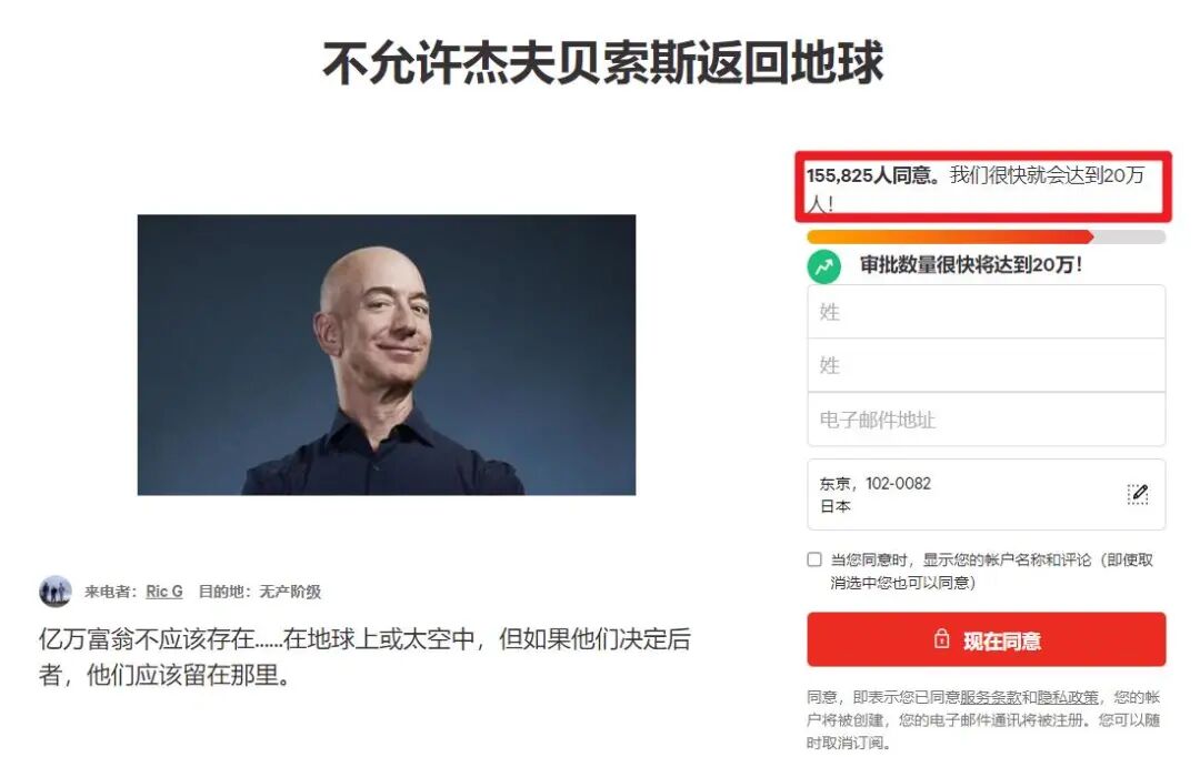 在鲍威尔先生都忘掉这次请愿后,美国乐子人网友涌入了这个页面,投出了神圣的一票。在截稿当日,已经有16544名网友同意了这次请愿,只待贝索斯效仿拳王泰森轻启樱唇,为这幅传世画作烙上自己爱的印记。