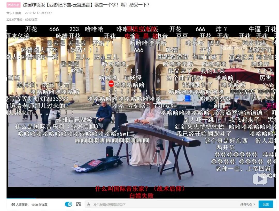 在视频中,许镜清先生专门夸奖了B站的UP主们演奏的《云宫迅音》。事实上,在网友们的不断演绎下,《云宫迅音》已经出现了众多风格各异的作品。而UP主碰碰彭碰彭,还曾将这首曲子带到了法国街头,吸引了众多路人驻足围观。