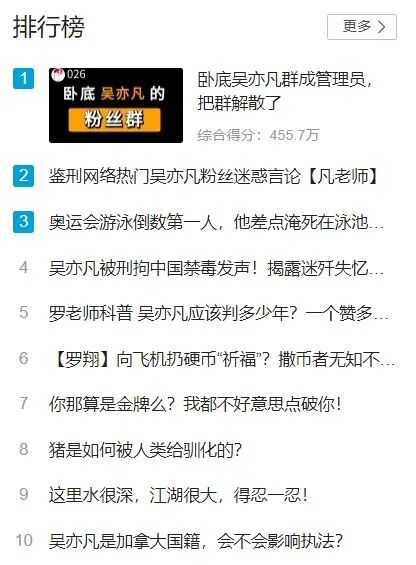 在热门视频排行榜上,吴亦凡相关视频占据了前四名,上一次出现如此盛况,恐怕还要追溯到马保国时代。当然,这还只是冰山一角,现实究竟有多夸张,远超常人的想象。