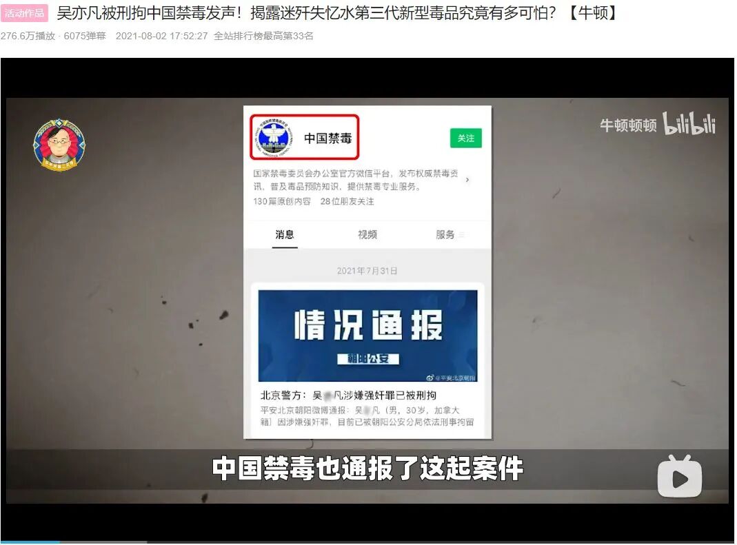 而UP主“牛顿顿顿”则引用了“中国禁毒”公众号发布的相关事件,揭露了“迷歼”这种毒品的可怕。吴亦凡事件扑朔迷离,随着一位又一位受害女性勇敢地站出来指认,有关吴亦凡“诱歼”、“迷歼”的证据逐渐浮出水面。事情的真相如何,还需警方后续的正式通报,但“中国禁毒”因吴亦凡事件发声,必然不是空穴来风。