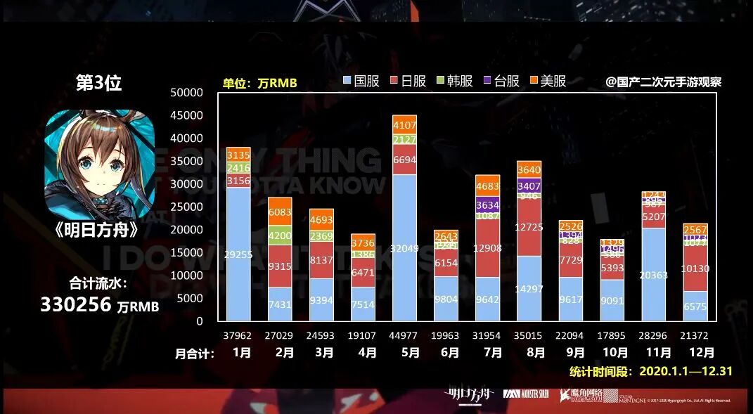 鹰角网络依靠2019年发行的《明日方舟》站稳了脚跟。2020年,《明日方舟》流水达33亿人民币,其中海外市场占比约一半。《明日方舟》同样是一款二次元游戏,腾讯之外,不断有公司依靠二次元打开局面。