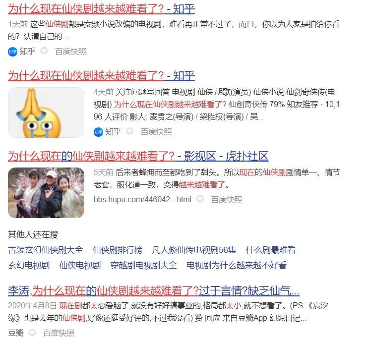 近年来,越来越多的网友发出哀叹:“为什么现在仙侠剧越来越难看了?”不管是在豆瓣、知乎,还是直男社区虎扑,这样的感叹越来越多、越来越密。