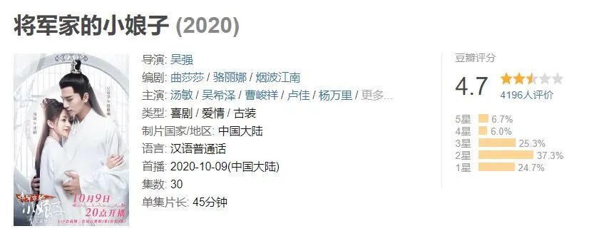 然而,这部剧的豆瓣评分只有6.8分,但这已经算是当下仙侠剧中的较高评分了。