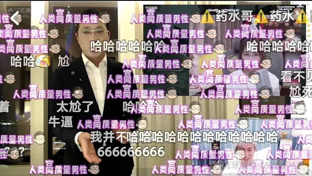 于是,这样一场双方各怀心思的直播,终于在8月13日晚上,如期举行了。并且一开播,即获得了广泛的关注。直播间人气最高时,在线观众多达四百万,满屏弹幕都是虎牙为徐先生定制的“人类高质量男性”,足以证明徐先生如今的人气。