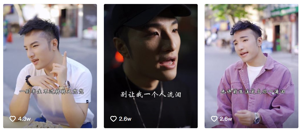 你很难想象,曾经留着一头清爽短发,身材健壮的帅气小伙,如今会是视频中这副模样——梳着油腻的二八分油头,脸上擦满了白色粉底,在镜头面前露出略显猥琐的微笑,同时扭动自己的盆骨,一边唱歌一边原地转动方向,摆出“人类高质量男性”的姿势。