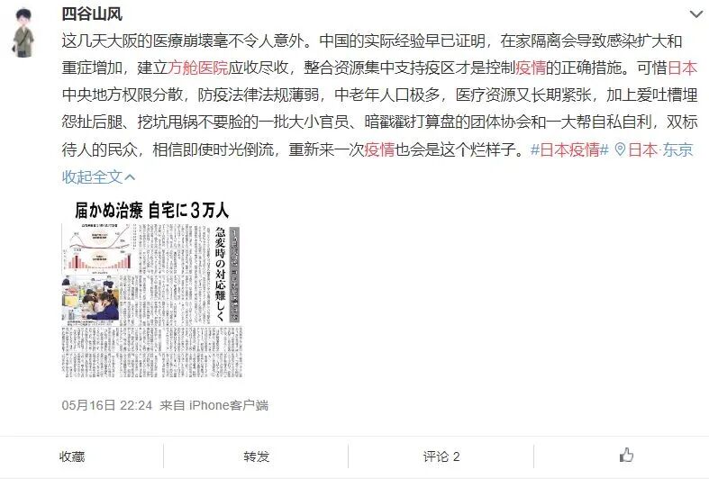 有网友辛辣地指出,由于国情不同,日本建立方舱医院并不是一件容易的事情。虽然世界都看到了中国方舱医院的效果,但却不是每个国家都能做到。