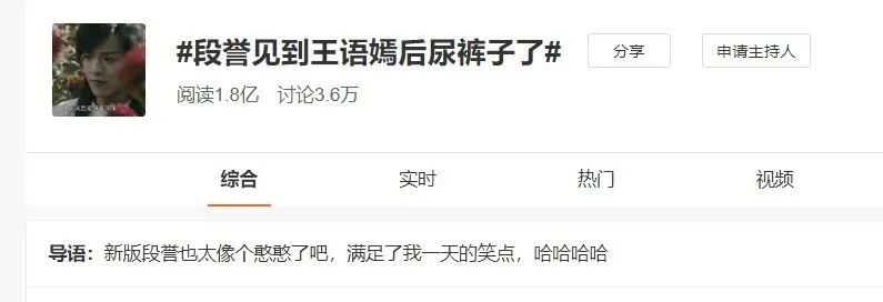 可以说,以上网友的观点,反映出了翻拍剧所面临的尴尬局面。毕竟,原著小说就在那,大概的剧情都知道了,惊喜也就少了。但这一逻辑并非绝对可靠,任谁也没有想到,《天龙八部》还能有这样的一个热搜——段誉见到王语嫣后尿裤子了。