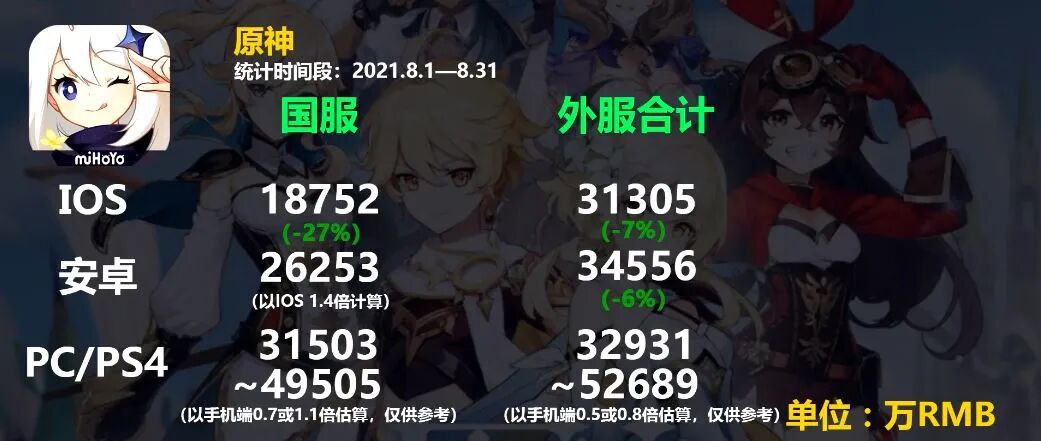 以《原神》为例,8月份iOS端流水为5亿,以30%的抽成算,苹果可以直接拿走1.5亿。而8月份的流水对《原神》而言还算低的,9月份周年庆开放的雷神池,流水已经创新高。如果米哈游可以用自己的支付渠道,那么这1.5亿的流水,就可以进自己腰包。