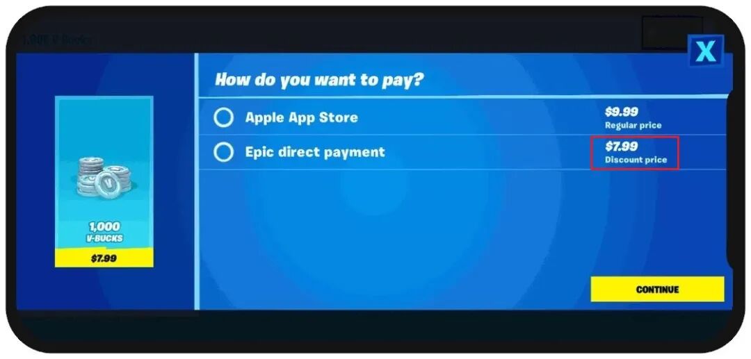 同时,“苹果税”要的不仅是“场地费”,还有App内购带来的30%分成,而这也是引爆Epic与苹果之战的关键。在Epic提供的《堡垒之夜》第三方充值渠道,用户可以用比苹果支付更低廉的价格,获取相同的服务,这是苹果绝对无法忍受的。