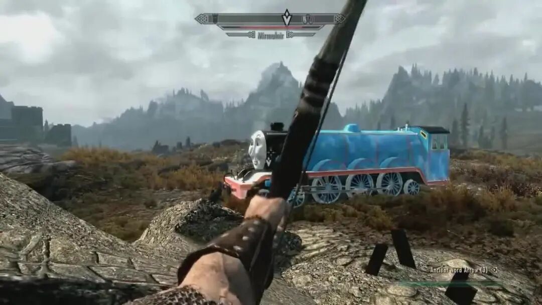 2013年,《上古卷轴:天际》正火,无数用爱发电的MOD制作者开始寻思起自己动手,凯文·布洛克也是其中的一员。当他的朋友从某款劣质手机游戏中,抠出了一个“托马斯小火车”模型时,他产生了将其塞进天际省的点子。