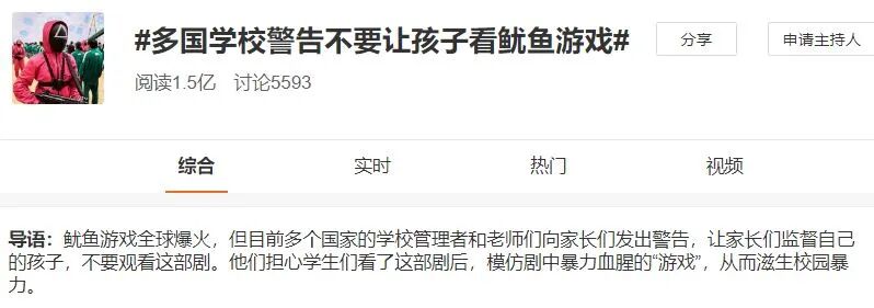 最近这段日子,一部名叫《鱿鱼游戏》的韩剧火了。虽然《鱿鱼游戏》并没有在中国大陆上映,但是这部剧集的热搜,已经多到目不暇接,“多国学校警告不要让孩子看鱿鱼游戏”“鱿鱼游戏适合孩子看吗”“鱿鱼游戏的抠糖饼有多难”,等等等等,阅读量动辄数以亿计。