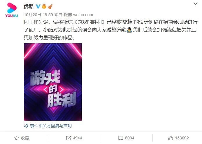 虽然事后优酷紧急更改综艺名称为《游戏的胜利》,重新设计了视觉元素,但造成的恶劣影响已经无法挽回。
