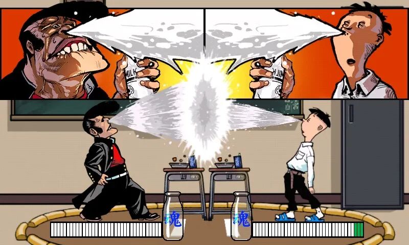 《番长喷奶对决》:左边是玩家,右边是前一个玩家的数据