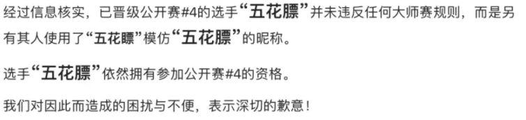 今年10月中旬,CDPR搞混了一名高仿玩家“五花瞟”与著名选手“五花膘”的ID,错封了“五花膘”的账号。