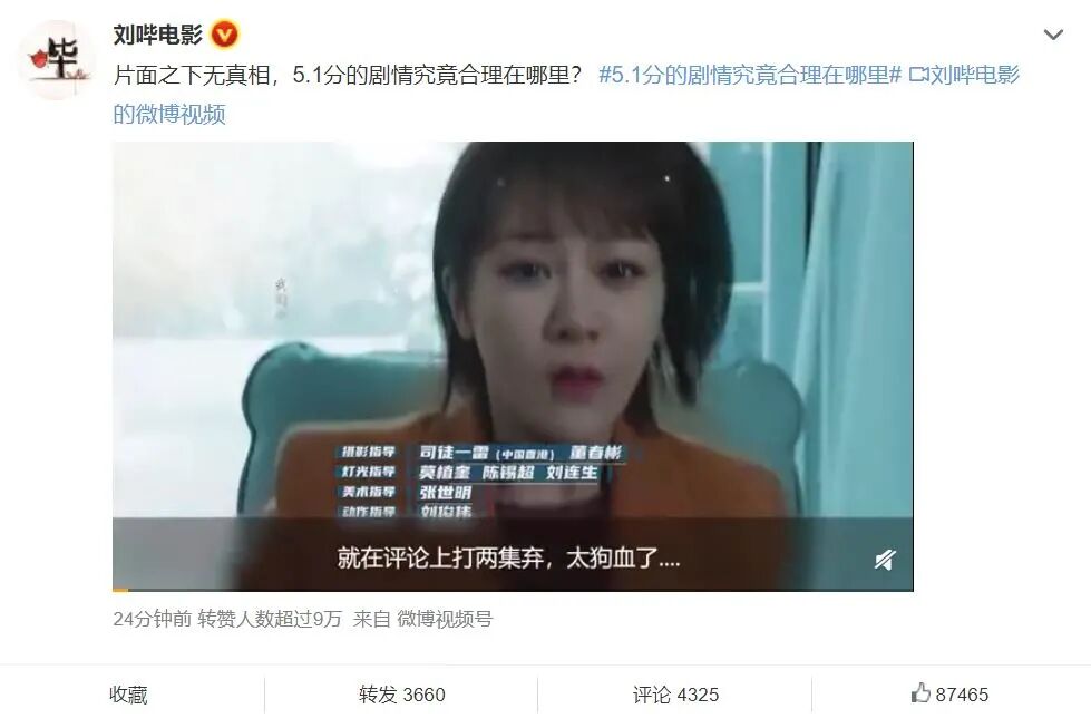 无为而治的结果,就是如今疑似大量水军下场,刷分事件频发。正在播映的《女心理师》,就因疑似恶意刷低分引发了巨大争议,不少网友产生逆反心理。知名电影博主刘哔专门为此制作了一期视频,为这部剧打抱不平。而这,已经不知道是第几次因为疑似刷分所引发的争议了。