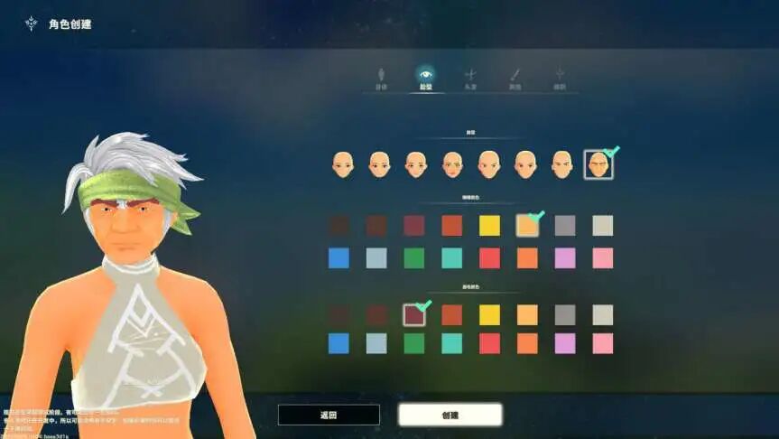 唯一称得上惊喜的,大概就是脸型中的两个特殊选项了。一个看上去略显憨态,仿佛是从某部搞笑动漫中穿越而来,和前面几个或可爱、或俊俏的正常脸型,形成了鲜明对比。另一个则是明显带有恶搞意味的日式大叔形象,束了条绿色发带,乍看上去像是老年发福版的旗木卡卡西。