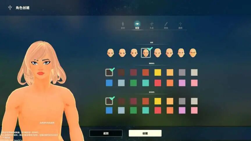 进入游戏,首先展示在玩家面前的,就是喜闻乐见的人物捏脸环节。作为一款缝合游戏,本作的捏脸玩法并不算精致,目前可选内容也并不丰富,基本上都是些基础的外观选项,像是性别、肤色、脸型、发型之类。不过鉴于游戏目前还是处于测试阶段,倒也没必要要求过多。除此之外,种族中的精灵和恶魔,目前也都无法选择,多少让人留下了些遗憾。