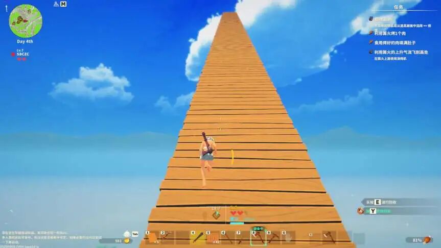 于是,你可以开始在岛上四处搜刮资源,制造基础工具以及设施。这个过程中,如果你玩过《我的世界》、《方舟:生存进化》等知名生存冒险游戏,自然是再熟悉不过了。想致富,先撸树、徒手制造各种工具和武器、随处搜集木材和石料,建造更加高级的建筑、升级文明等级,解锁更多的设计图纸等等。玩一款游戏,就相当于同时在玩多款知名大作。