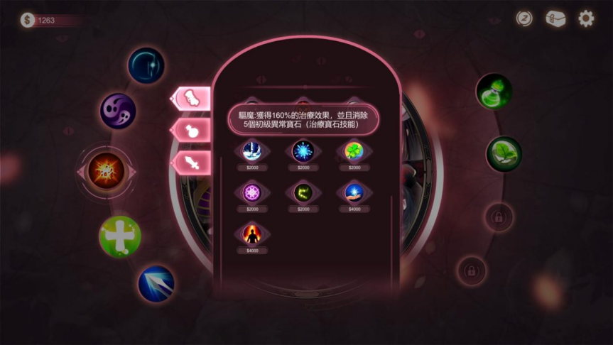 比如,玩家在开始“战斗”前,可以选择花费一定点数,购买技能和局内道具,这些技能和道具各自带有不同的效果,结合前面说到的,少女们作为关卡BOSS,会释放不同技能阻碍玩家过关的设定,可以说是为玩家带来了更多策略意识上的考量。