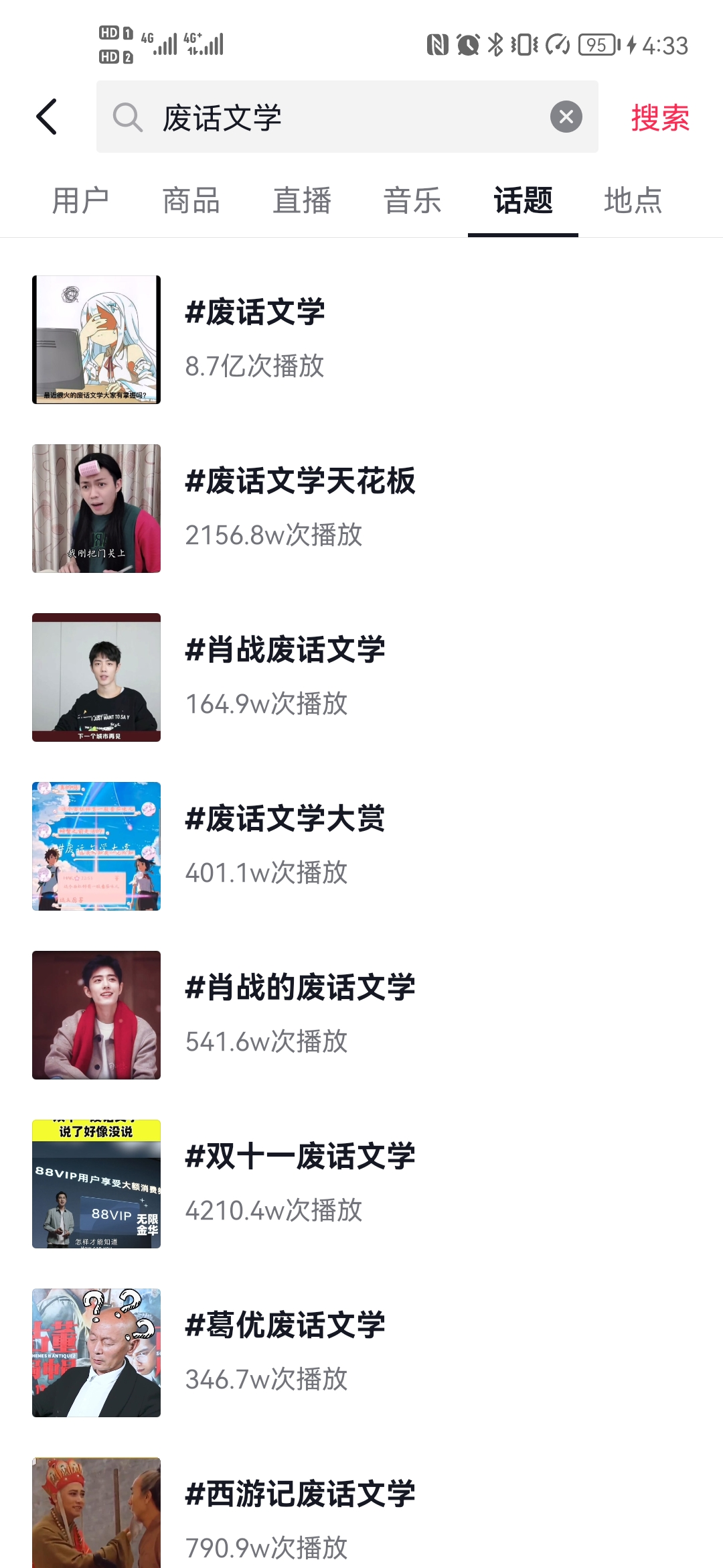 在微博,有关“废话文学”的话题讨论,多达188条。其中诸如“#废话文学大赛#”“#明星都是废话文学大师吧#”“#废话文学让人快乐是因为幽默吗#”等话题,阅读量高达数亿。相比于B站以远创“废话文学”作品为主,微博用户更喜欢吐槽明星说过的“废话”,或者影视剧中出现过的废话。这些话题往往也更容易在同类型话题中,获得更高的阅读量。