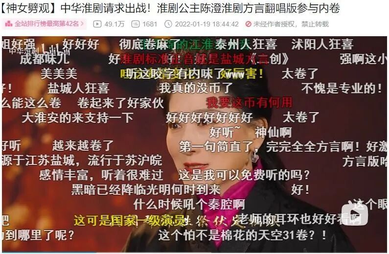 随后,上海越剧院演员、傅派传人裘丹莉带来了越剧版《神女劈观》,UP主卿思颖颖带来了黄梅戏版《神女劈观》,江苏省淮剧团国家一级演员、“陈派”陈德林先生之女陈澄,带来了淮剧版《神女劈观》。以此为契机,陈澄老师还开通了B站账号。