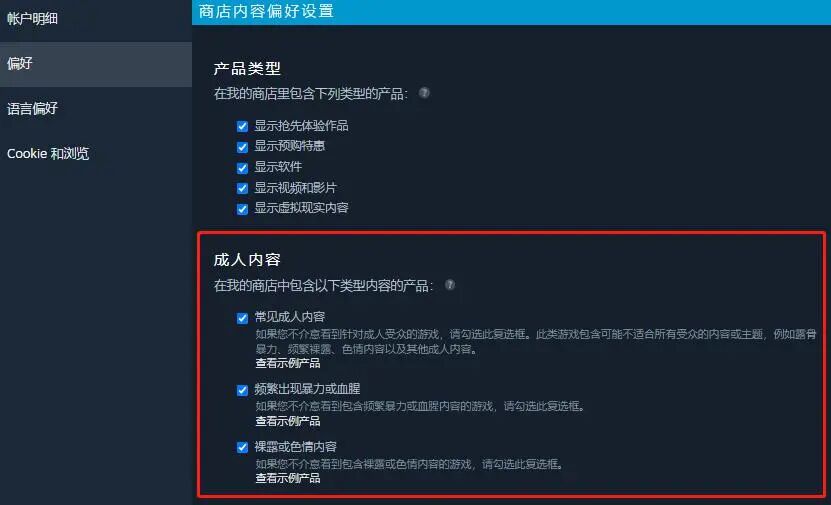 到了次月,Steam又宣布即将推出一款服务于普通用户的“偏好筛选”机制,在这个“偏好选项”的帮助下,用户可以根据自己的需要,屏蔽掉部分内容在商店中的显示。其中最主要的,就是那些受到争议的“成人内容”。