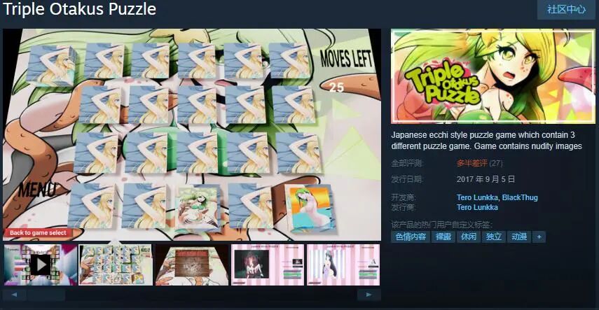 虽然在表面上,Steam版本的《哈尼炮》没有直接的“性行为”描写,但在使用了制作方准备的“后门技巧”后,玩家可以轻松解开Steam版本为了通过审核,而屏蔽掉的“成人内容”,得到与其他地方购买的相同版本。更关键的是,对于更多主流玩家来说,虽然“三消”本身算不上什么新鲜的东西,但也比单纯的文字阅读,要有趣得多。