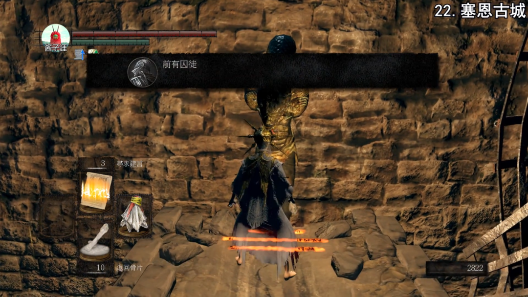 比如,《黑暗之魂》初代中的塞恩古城,有一处蛇人背靠的石墙,必须借由城内的石球机关来打开,但若无人提醒的话,这条道路是很难发现的。如果玩家使用了“寻找建言”,会看到一开始把玩家救出监狱的NPC“奥斯卡”,在这里留下了一段“前有囚徒”的文字,让玩家能注意到这条隐藏道路的存在。
