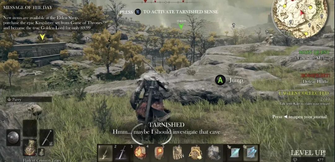 首先,我在这里并不打算纠结“逃课”问题。整个《艾尔登法环》的流程里,我都走得轻甲翻滚蹭刀流,从头到尾都是大鸡腿+狮子斩。虽然,我确实也没有用法术跟骨灰的习惯,但既然游戏给到了这些手段,那么用还是不用,总归只是玩家的个人选择问题。这跟从机制上就强迫你看攻略过流程,还是不一样的。
