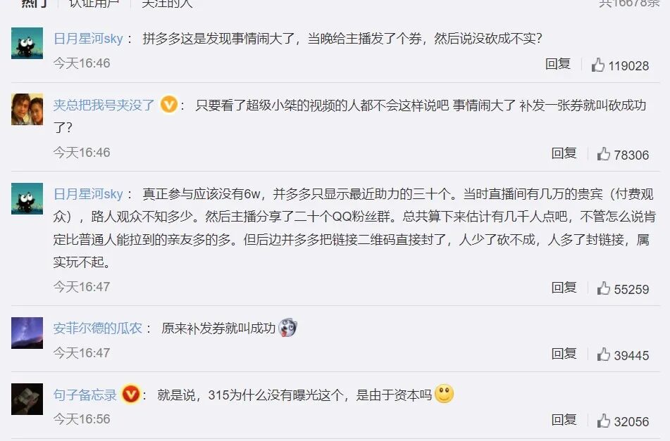 事件发展至此,或许“超级小桀”砍单是否成功,已经不是问题的关键了。如果换做是普通消费者,想要找到几千人帮忙砍单,几乎是不可能达成的事情。而拼多多的回应,显然没有得到网友们的认可。