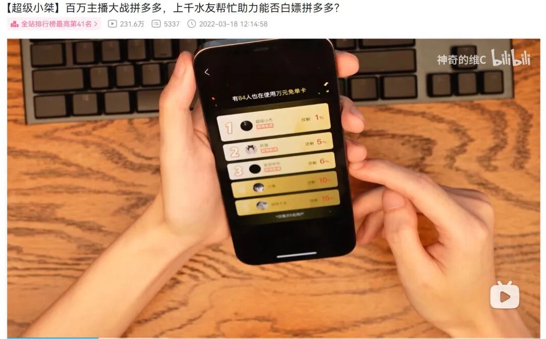 事情的起因,还要从一场直播说起。就在3月17日,知名游戏主播超级小桀,在自己的直播间里,进行了拼多多免单活动的直播,买的商品是一部手机。起初,系统提示超级小桀距离成功免单只差1%,在同时参与这场免单的用户中,他的进度排名第一。