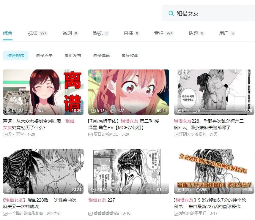 不过,最近人们知道《租借女友》的方式,并不是因为接地气的主题“租女友过年”,而是因为漫画第227话更新后, B站多出了大量具有安利性质的荐番视频。