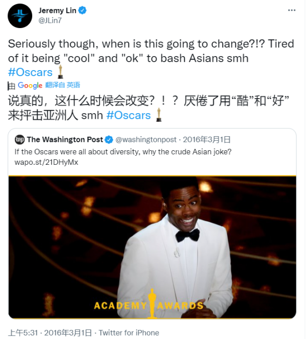 当时还在NBA服役的林书豪,对这种无穷无尽的亚裔笑话表示了相当的不满。