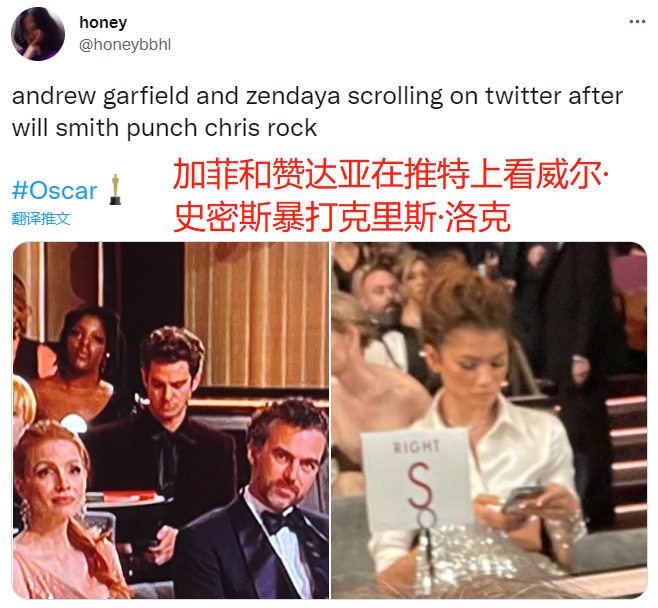 而今年再度于蜘蛛侠电影中露脸,还了粉丝们一个心愿的加菲(Andrew Garfield),则是在事情发生时,第一时间拿出了手机。有网友发推表示,他百分百是在逛推特,看看网友们对于“威尔·史密斯事件”的反应。本以为只是网友们的戏言,没想到加菲本人也转载了这条推特,仿佛在暗示些什么。