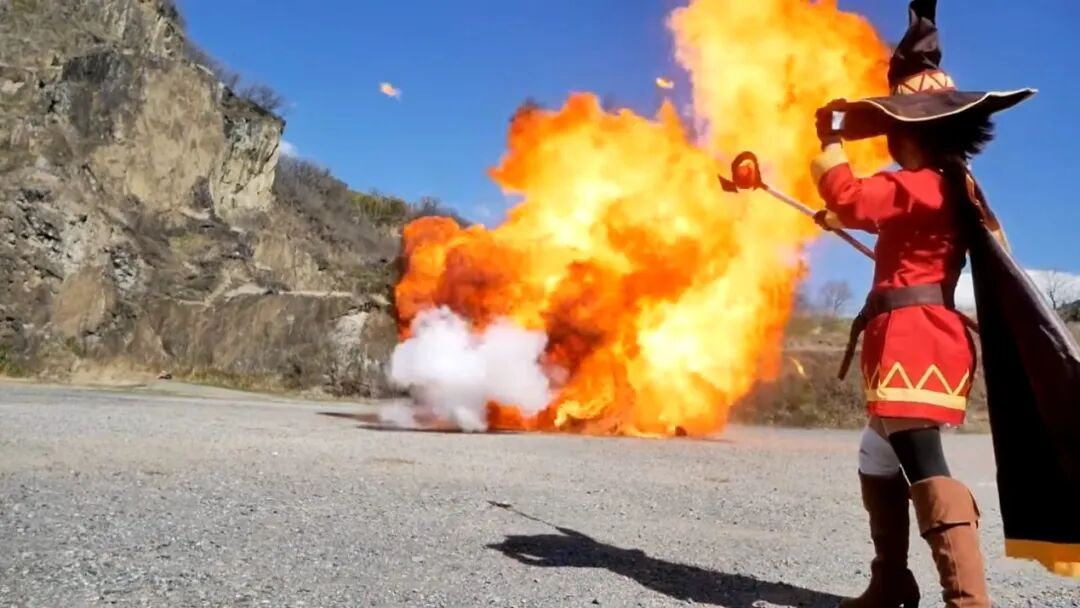 当然,如果要论在“本家”以外,和这场爆炸最契合的Cos,自然还得是下面这位《为美好的世界献上祝福》里惠惠的Coser。
