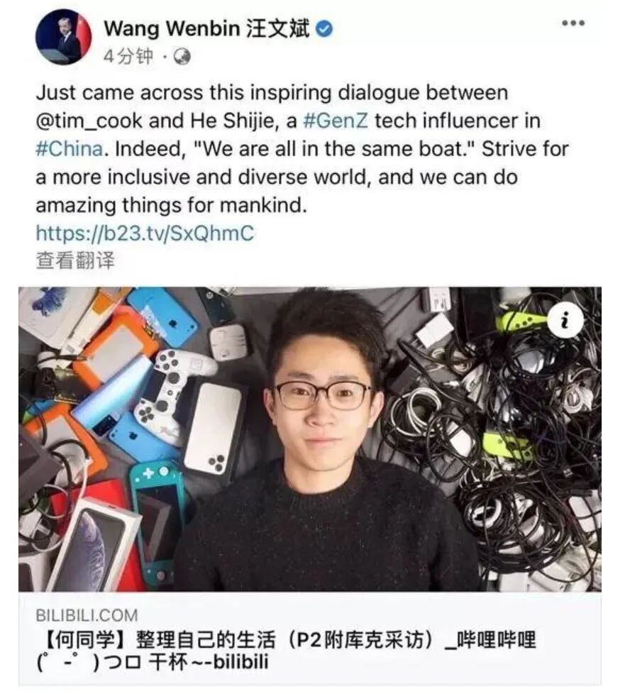 时任外交部发言人汪文斌,特意转发了这段采访视频,并对何同学赞美有加。作为一名科技区UP主,何同学的牌面,堪称前所未有。