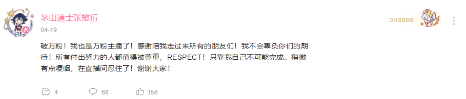 不过从目前来看,“道士虚拟主播出道”这事,依旧在不断给张道长带来新的粉丝和观众。其粉丝数量也是很快突破一万,舰长数即将破百。