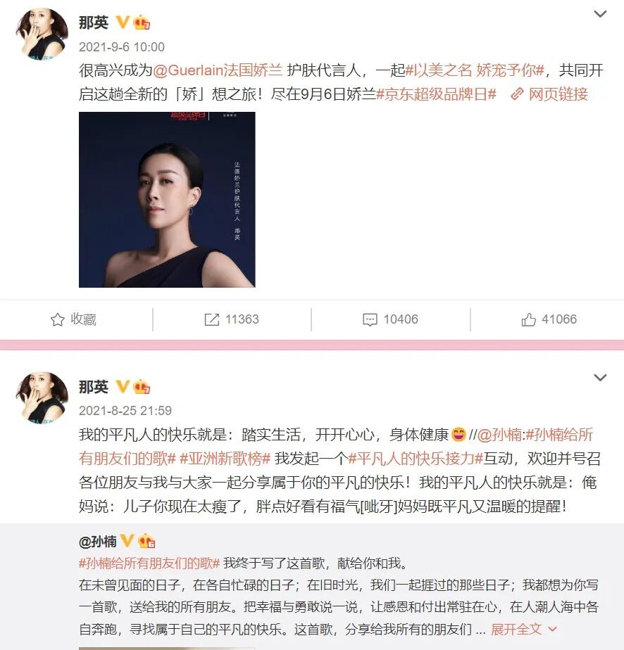 不过,也有网友发出了这样的感叹,还以为那英真的能这么敢说,原来这条微博发布于九年前。的确,和九年前相比,那英微博的画风,已经发生了巨大的变化。如今,她的微博成了发布官样文章,以及商业广告的集散地,而非分享生活与感悟人生。