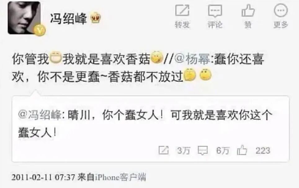 还是在这一年,因《宫》走红的杨幂、冯绍峰绯闻不断,作为当事人,两位明星毫不避讳,在微博上亲切互动。虽然事后证明绯闻为假,但在当时,不少吃瓜群众都来微博围观,信以为真。