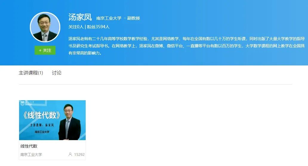 事实上,汤家凤在“爱玩”的同时,确实是一位足够优秀的考研讲师。根据中国慕课以及其他渠道展示的资料,他不仅有将近三十年的教学经验,能够全程脱稿讲授高数、线代和概率论,著有像《考研数学接力题典1800》这样的试题集,还有着南京工业大学的副教授职称。
