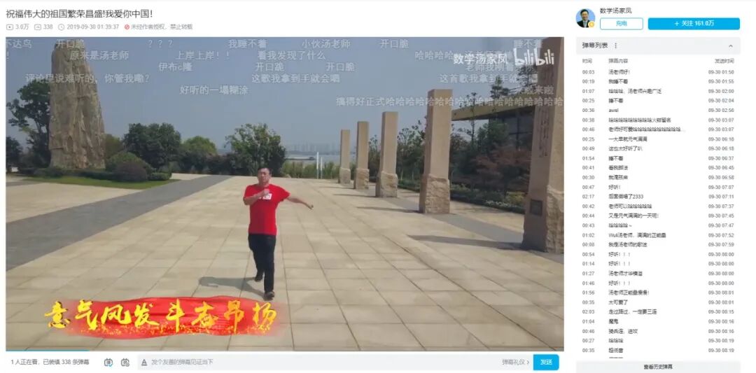 于是,B站上除了大批二创作者以汤家凤视频素材制作的鬼畜视频之外,你还能看到他本人发布的搞笑视频,比如年代感十足的唱红歌迈大步个人MV。