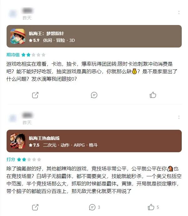 除了认真从游戏角度出发给出的差评,粉丝们也有些其他差评方式。有的粉丝们选择“翻史书”,怒斥朝夕光年把游科前身出品,拥有优秀玩法的《战争艺术:赤潮》运营死了;有的粉丝们虽然没玩到游戏,但也围绕关键词“国产”“IP换皮”整了篇“一眼丁真”的评价。