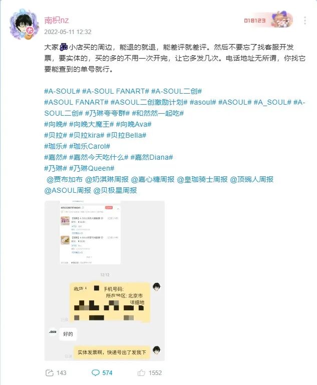 5月11日当晚,直播结束后,愤怒的粉丝们难以入睡,他们不断翻看评论,尝试找到同伴们分享的申诉渠道,表达着自己的不满——包括但不限于取关账号,索要此前购买周边的发票,向A-SOUL有商业合作关系告知情况等。