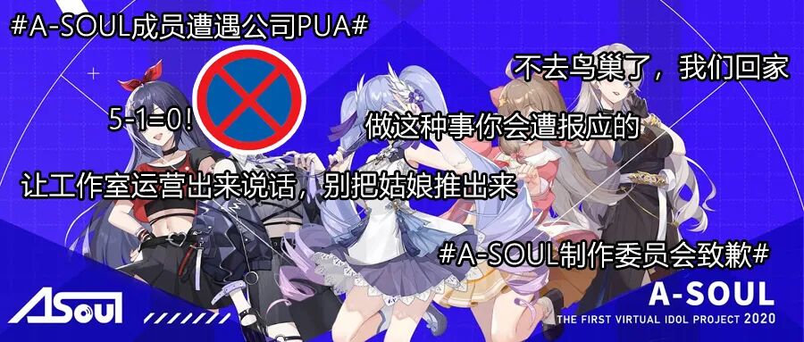 无论如何,它们不该是一个虚拟偶像团体经受的遭遇,更何况这个团体的名字还是A-SOUL——是那个通过走心内容,让很多打工人在加班后的深夜,短暂获得温暖的A-SOUL。