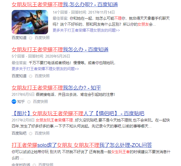 而在手游崛起后,这种类似的情况,在人气手游《王者荣耀》上又有所体现。网络上询问“对象玩《王者荣耀》不理我”的咨询,那可是数不胜数。